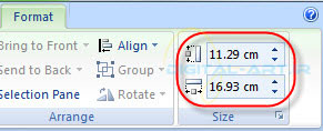 نکته : با مراجعه به کادر گروه Size در سربرگ باز شده Format میتوانید تغییر سایز دلخواه را اعمال نمایید. مقدار عددی سایز برحسب سانتیمتر بوده و گزینه اول برای تغییر ارتفاع نمودار و گزینه دوم برای تغییر عرض نمودار میباشد.